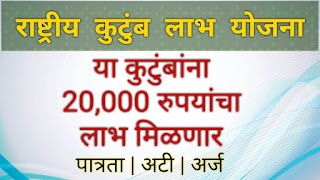 Rashtriya Kutumb Labh Maha Yojana is being implemented by the Department of Social Justice and Special Assistance, Government of Maharashtra. The benefit is a financial provision of Rs. 20,000 in case of death of an earner from a financially weak family.